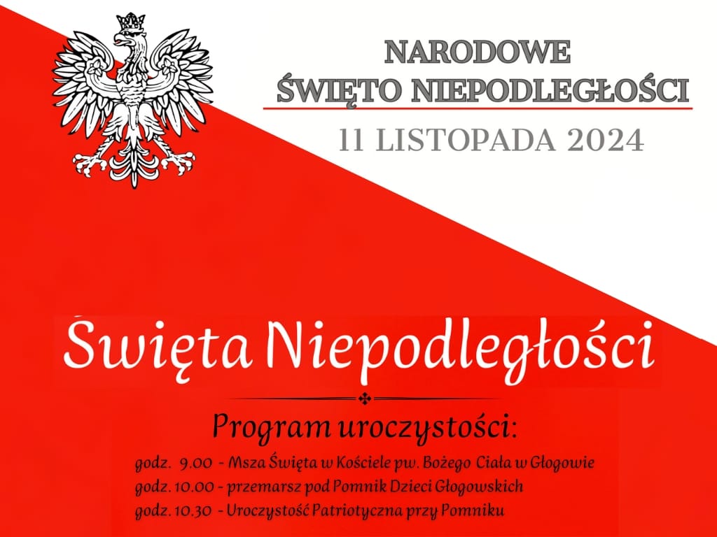 Starosta Głogowski Michał Wnuk oraz Prezydent Głogowa Rafael Rokaszewicz serdecznie zapraszają do udziału w powiatowo-miejskich obchodach Narodowego Święta Niepodległości, które odbędą się 11 listopada 2024 r.