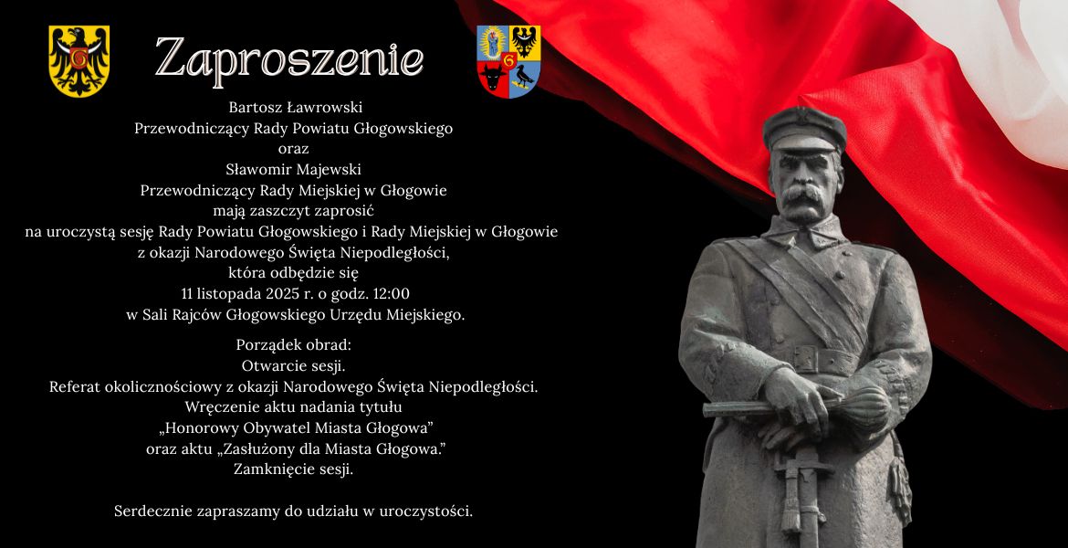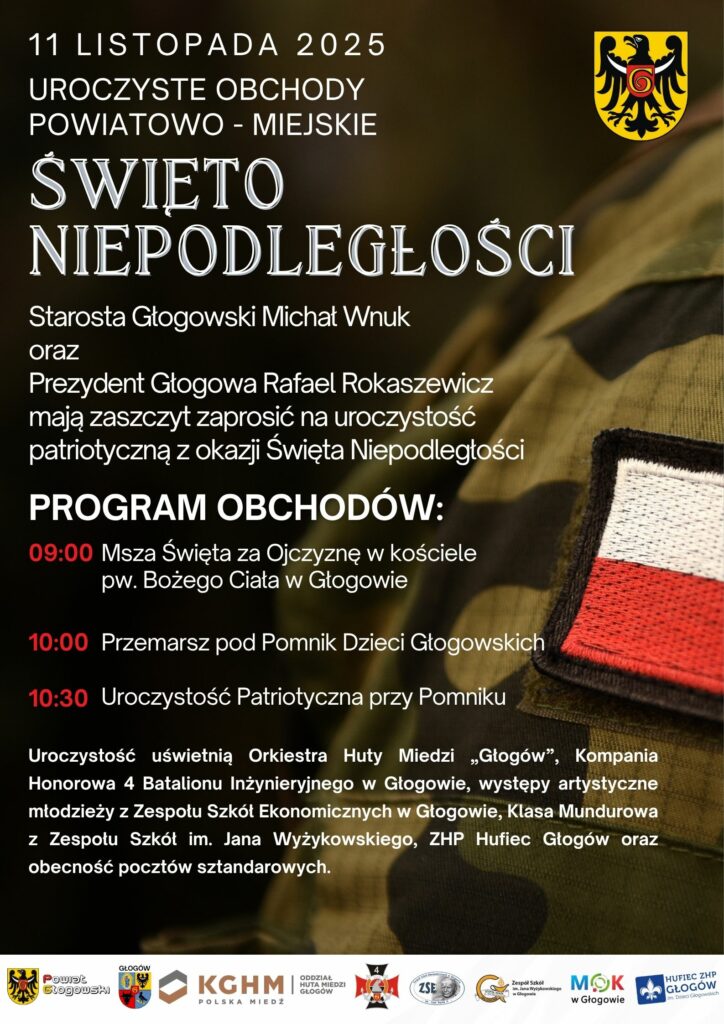 Serdecznie zapraszamy mieszkańców do wspólnego uczczenia Narodowego Święta Niepodległości w Głogowie 11 listopada 2025 r.