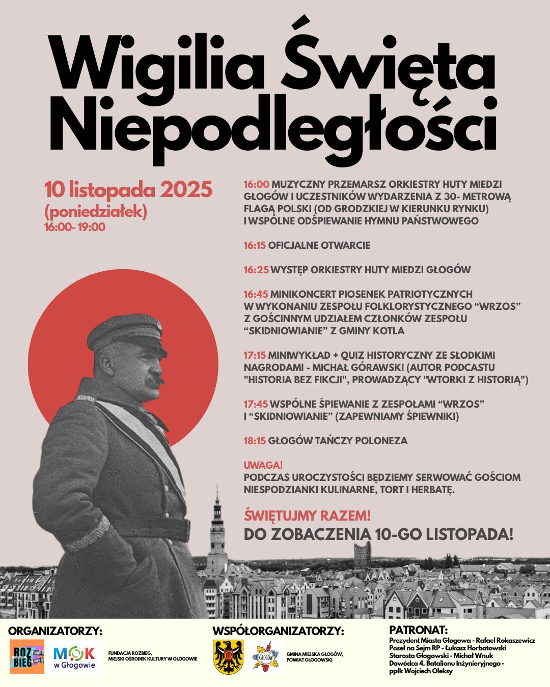 Świętujmy razem! Serdecznie zapraszamy mieszkańców Powiatu Głogowskigo do wspólnego uczczenia tej wyjątkowej rocznicy 10 listopada 2025 r.
