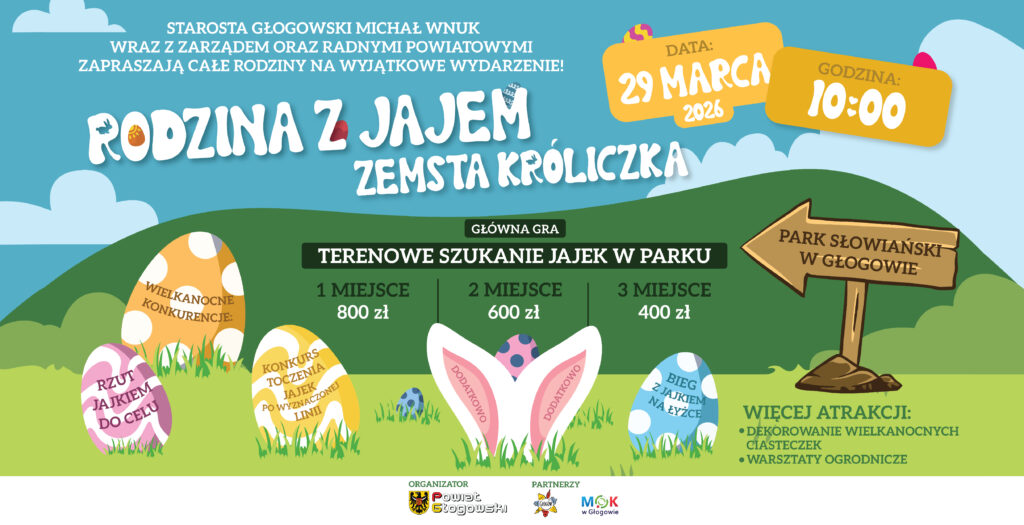 Zarząd Powiatu wraz z Radnymi Powiatowymi zapraszają na II edycję rodzinnego wydarzenia „Rodzina z Jajem – Zemsta Króliczka”, skierowanego do mieszkańców powiatu głogowskiego.