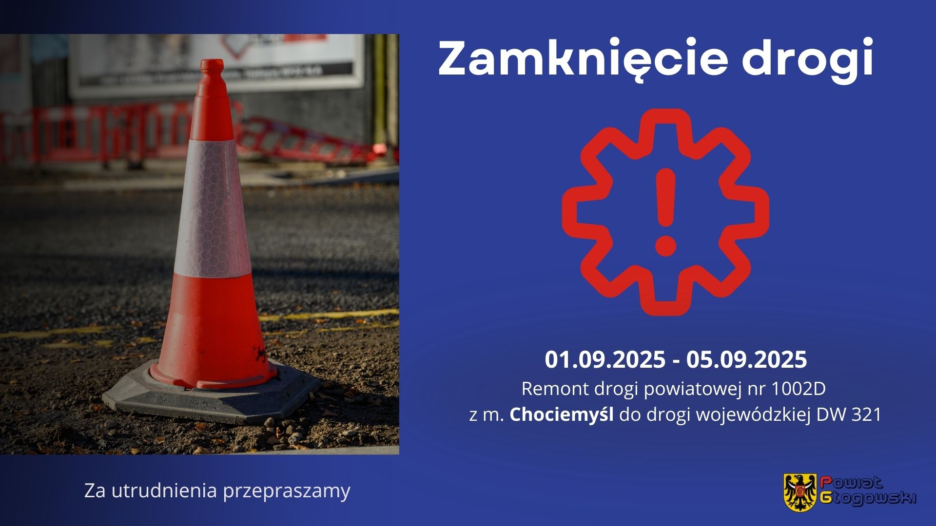 Zamknięcie drogi będzie obowiązywać od 01.09.2025 r. do 05.09.2025 r